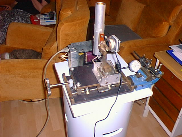 Tester set up to zero position, web camera without lens mounted on eyepiece holder.